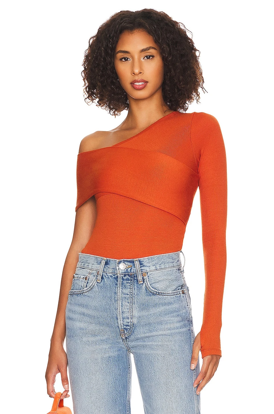 - Asymmetric one shoulder styling with fabric overlay detail