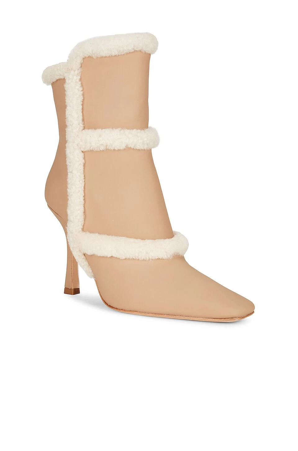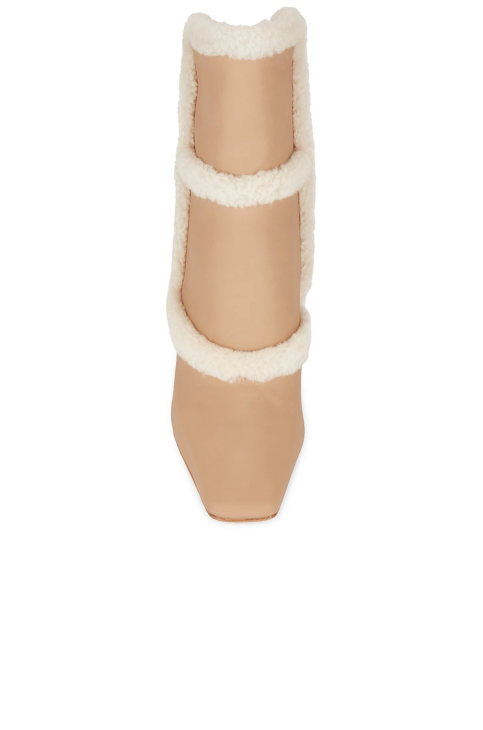 - Leather upper with dyed lamb fur trim and leather sole