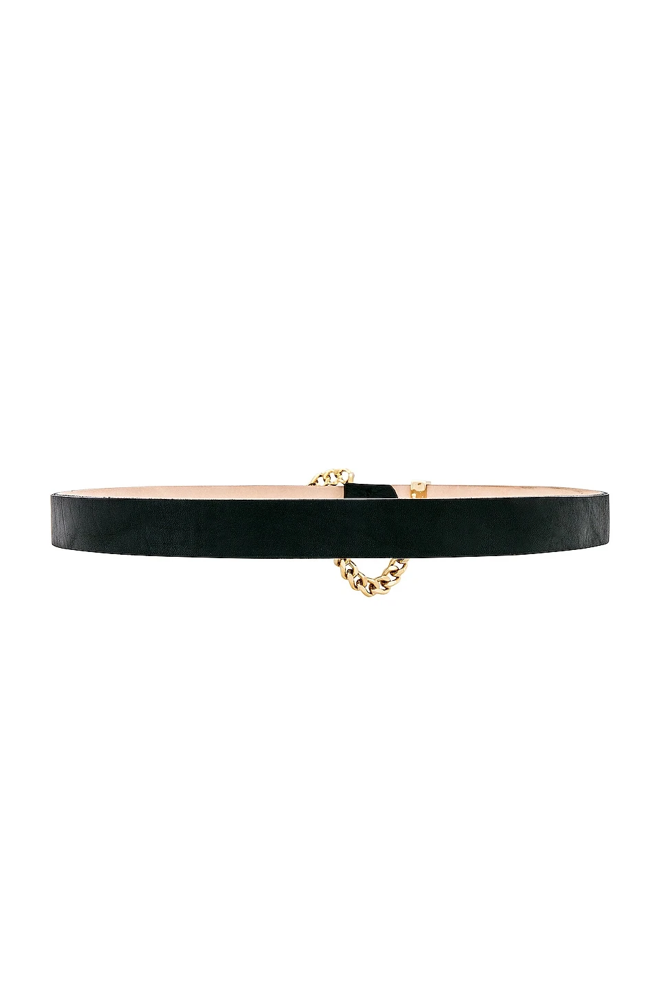 - Gold-tone chain style buckle with draped chain detail