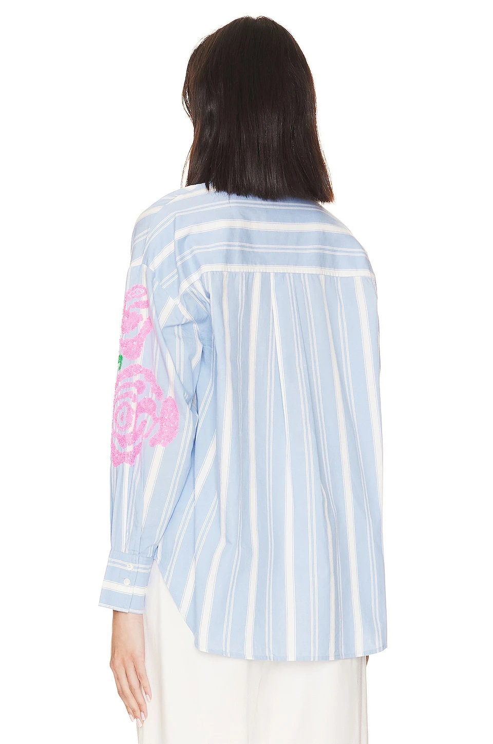 - Lightweight poplin fabric with shirttail hem