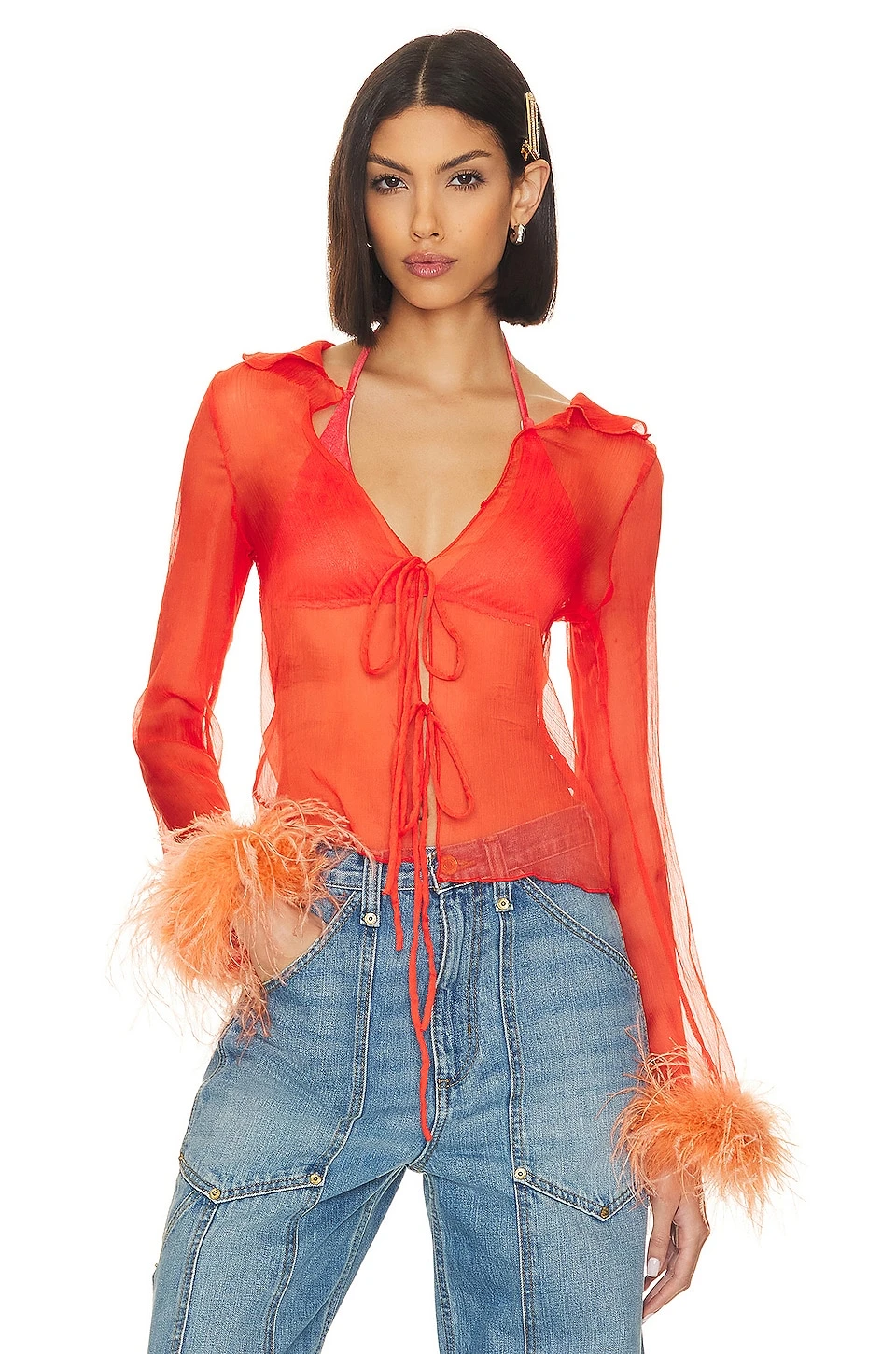 Be the first to review “Perla Sheer Feather Trim Blouse Ivory” Cancel reply