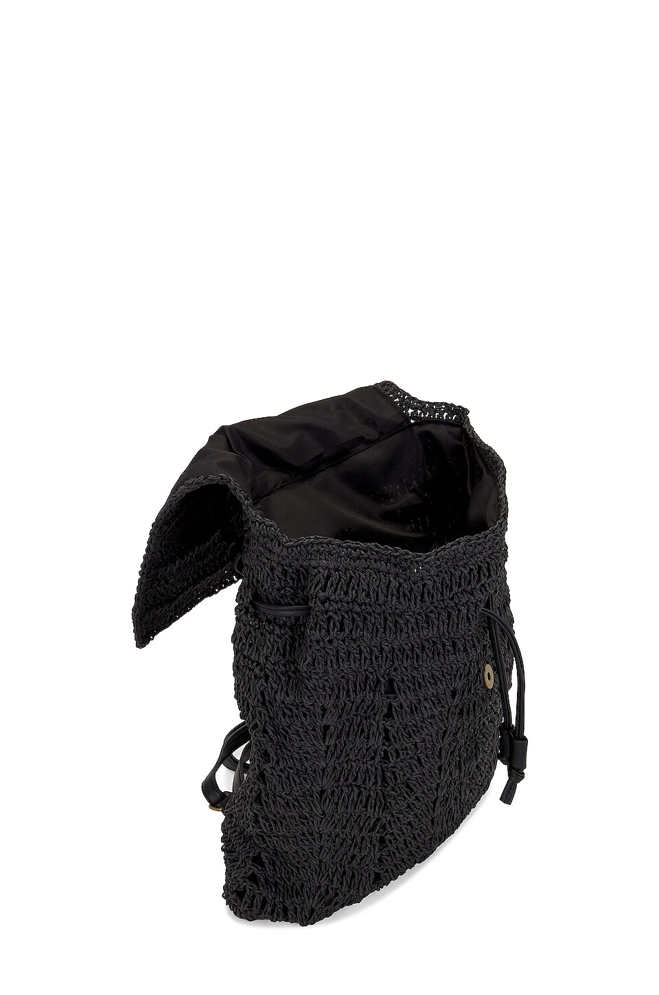 - Flap top with magnetic button closure and adjustable drawstring