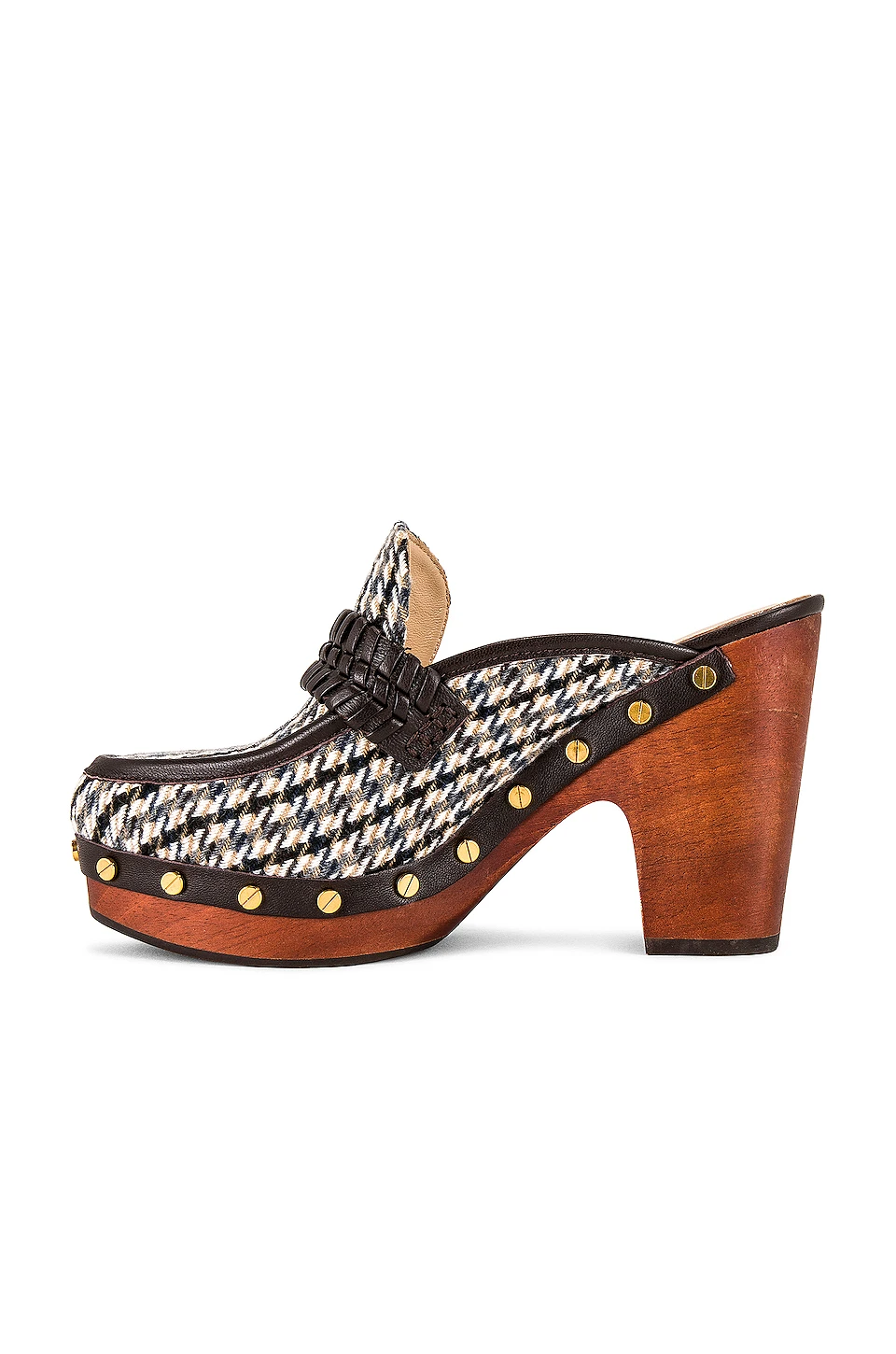- Tweed and leather upper with rubber sole